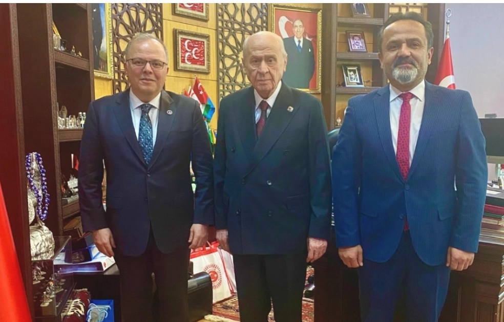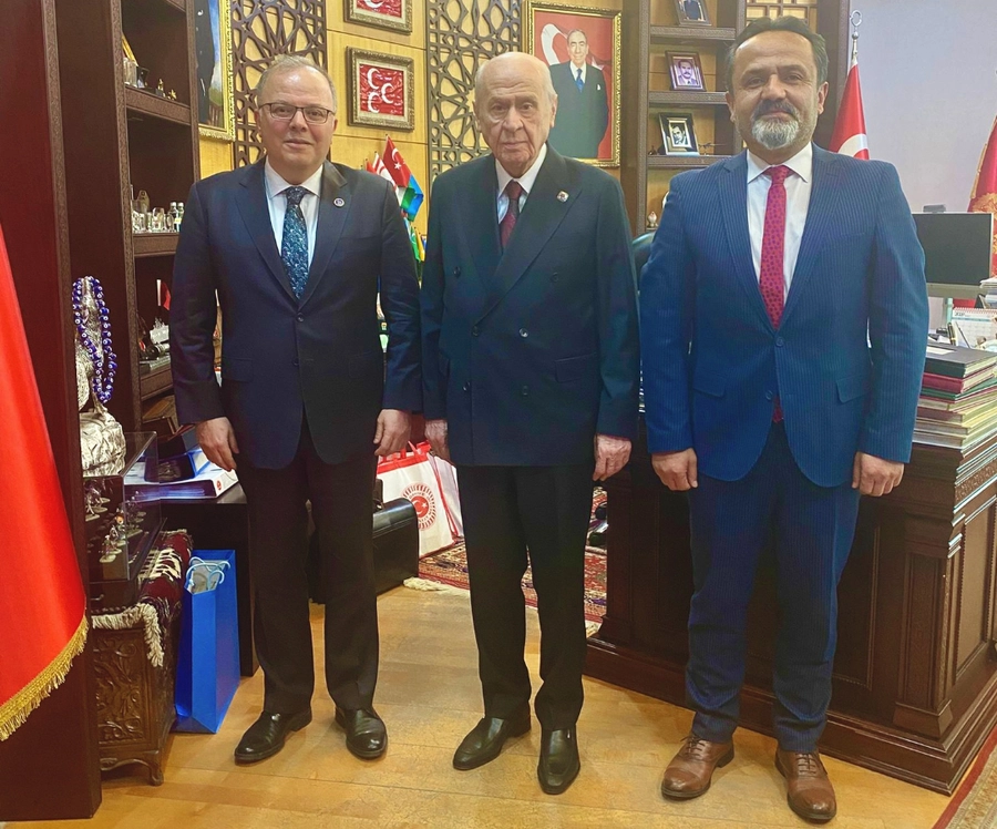 Milliyetçi Hareket Partisi (MHP) Genel Başkanı Dr. Devlet Bahçeli bu gün makamında partisinin Merkez Yönetim Kurulu (MYK) Üyesi Murat Kotra ve Hasbeyler Köyü Muhtarı Hasan Duman'ı kabul etti.