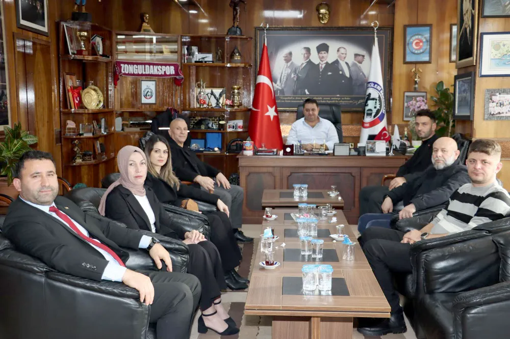 Milliyetçi Hareket Partisi (MHP) Kozlu İlçe Başkanı Atakan Karali ve İlçe Yönetim Kurulu üyeleri, Genel Maden İşçileri Sendikası (GMİS) Genel Başkan Hakan Yeşil’i ziyaret etti. Ziyarette Genel Başkan Hakan Yeşil’e GMİS Genel Sekreteri Yener Arslanbuğa eşlik etti.