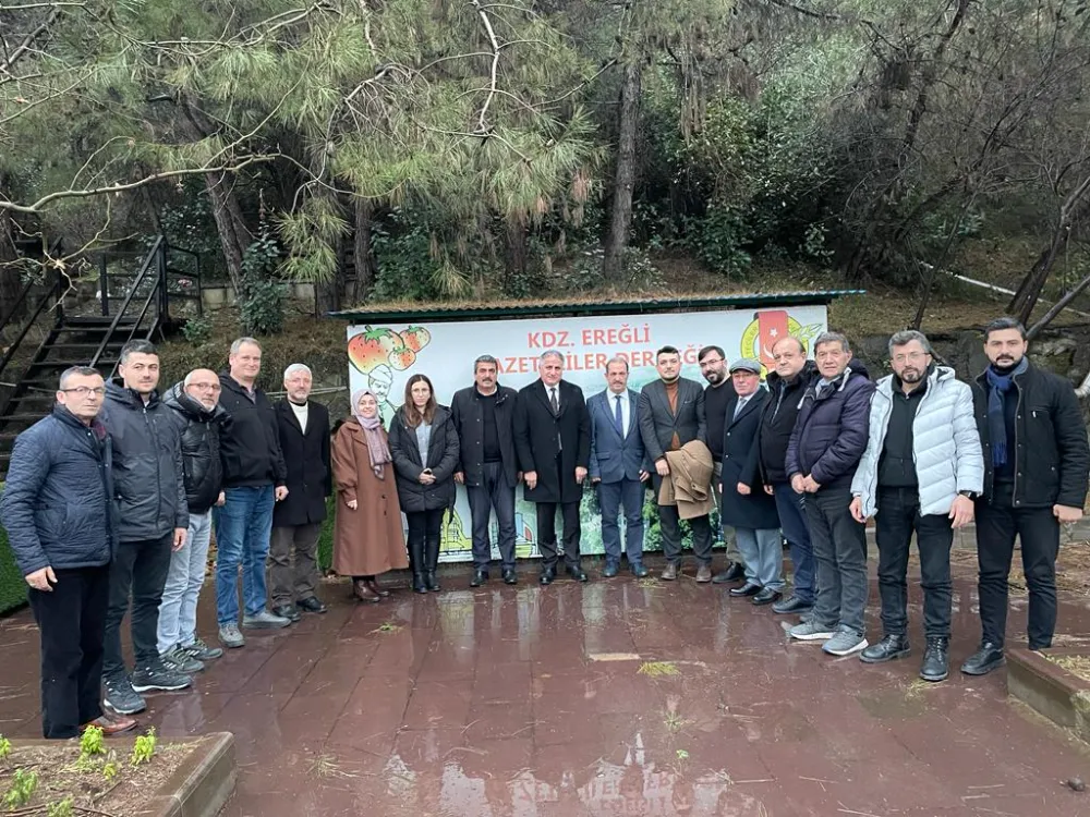 Vekilim bu özel günümüzde bizi ziyaret ettiğiniz için teşekkür ediyorum. Bu vesile ile aynı zamanda genç bir kardeşimiz AK Parti İlçe Başkanlığı’na geldi ekibiyle beraber. Tüm birimlerinizle otuz bir kişiye tek tek başarılar diliyorum. Biz sizin dediğiniz gibi dördüncü kuvvet değil birinci kuvvet olarak görüyoruz çünkü bizim kalemimiz var, biz her şeyi görüyoruz. Eğer biz doğruyu yazarsak, halkın adına doğru bilgileri aktarırsak biz her zaman birinci gücüz. Bizler kalemimizi doğru kullandığımız sürece devletin de, muhalefetin de, iktidarın da, herkesin de yardımcısıyız. Biz Ereğli’de yaşıyoruz. Ereğli’nin sorunlarını çözmek hepimizin davası, parti gözetmeksizin hepimiz bir aileyiz. Biz hepimiz birbirimize muhtacız, ihtiyacımız var. Biz birlik olursak her sorunun üstesinden geliriz”.