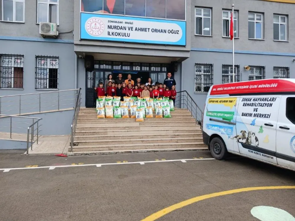 Kdz. Ereğli Belediyesi Sokak Hayvanları Rehabilitasyon ve Bakım Merkezi’ne minik kalplerden anlamlı bir destek geldi.