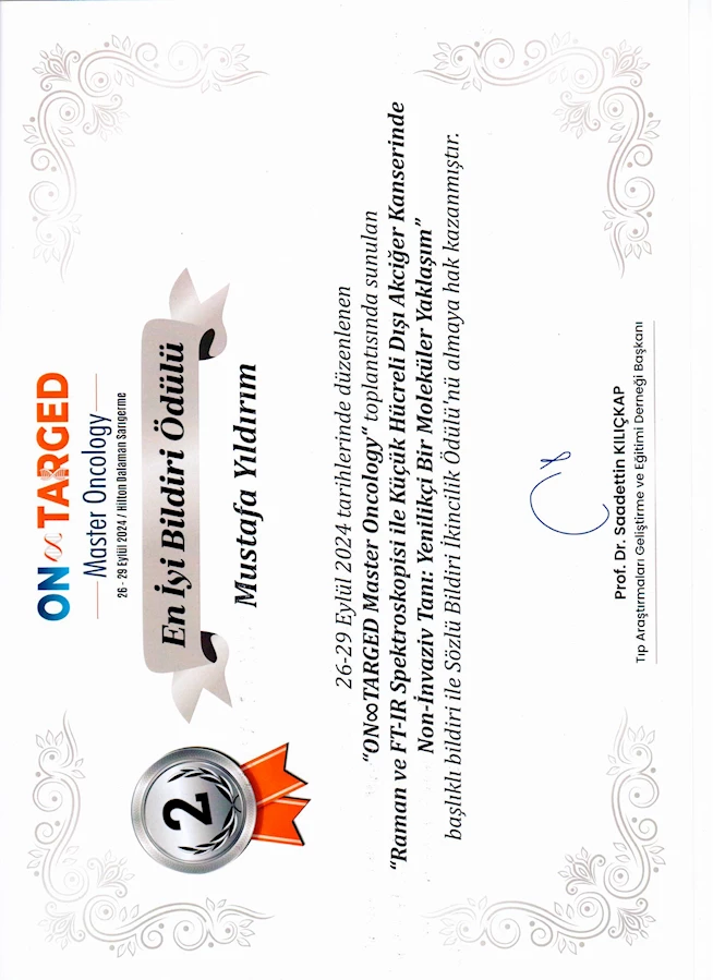 - SANKO ÜNİVERSİTESİ ÖĞR. ÜYESİ PROF. DR. YILDIRIM, “RAMAN VE FT-IR SPEKTROSKOPİSİ İLE KÜÇÜK HÜCRELİ DIŞI AKCİĞER KANSERİNDE NON – İNVAZİV TANI: YENİLİKÇİ BİR MOLEKÜLER YAKLAŞIM” KONUSUYLA “SÖZEL BİLDİRİ İKİNCİLİK” ÖDÜLÜ ALDI