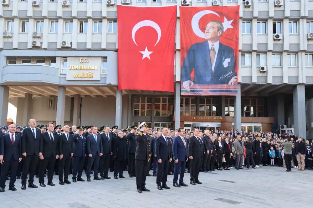 Tören, Zonguldak Valisi Osman Hacıbektaşoğlu’nun Atatürk Anıtı’na çelenk sunumuyla başladı. Ardından saygı duruşu ve İstiklal Marşı’nın okunmasıyla program sona erdi.
