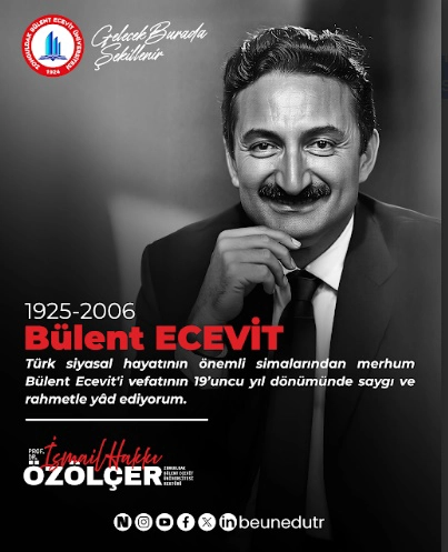 Zonguldak Bülent Ecevit Üniversitesi (BEUN) Rektörü Prof. Dr. İsmail Hakkı Özölçer, Türkiye Cumhuriyeti Başbakanlarından Bülent Ecevit’in vefatının 19. yıl dönümü münasebetiyle bir anma mesajı yayımladı.