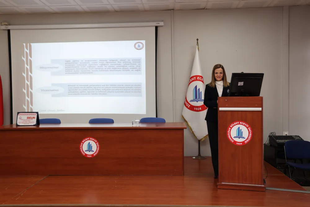 Toplantının açılışında konuşan Sağlık Bilimleri Fakültesi Dekanı Prof. Dr. Sibel Koçak, 2024–2025 Akademik Yılı boyunca fakülte bünyesinde yürütülen faaliyetlere ilişkin kapsamlı bir sunum gerçekleştirdi. Prof. Dr. Çelik; 2025–2026 Akademik Yılı’na yönelik planlanan çalışmalar, yeni dönem hedefleri, akademik ve idari personel ile öğrenci sayıları, tamamlanan ve devam eden bilimsel, sportif ve sosyal projeler hakkında ayrıntılı bilgiler paylaştı. Sunumunda ayrıca hayata geçirilmesi planlanan akademik projeler ile öğrencilere yönelik kültürel ve toplumsal etkinliklere de değinen Prof. Dr. Koçak, Sağlık Bilimleri Fakültesinin gelişimine verdiği desteklerden dolayı BEUN Rektörü Prof. Dr. İsmail Hakkı Özölçer’e teşekkürlerini sunarak konuşmasını tamamladı.