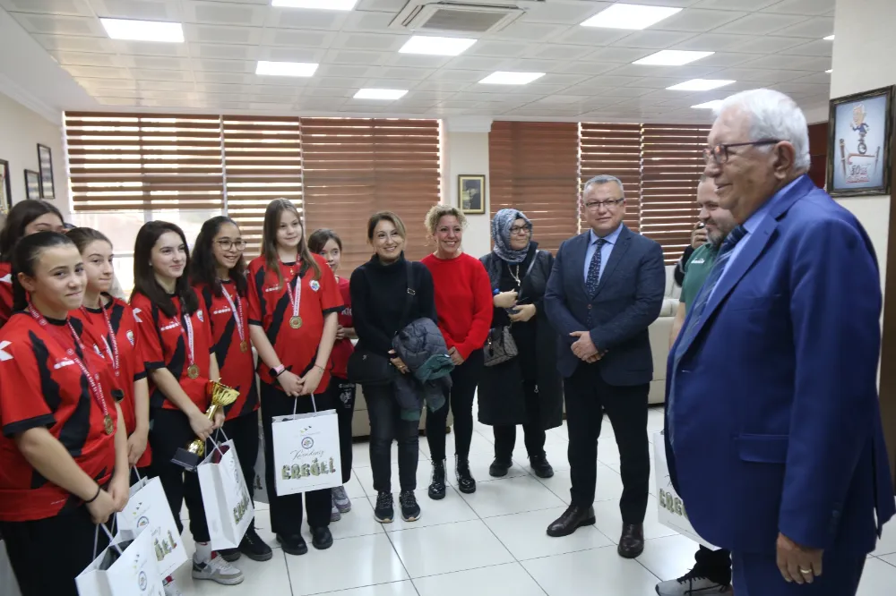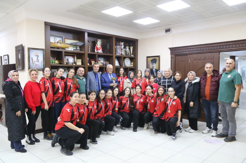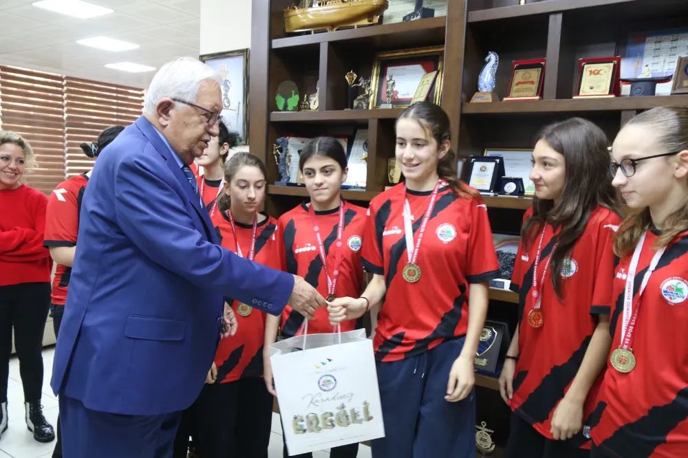 Bölgemizi temsil eden tek basketbol takımı olan ve Zonguldak’ta lig olmadığı için U14 Bolu Basketbol Ligi’ne katılan Kdz. Ereğli Belediyespor Kız Basketbol Takımı, Bolu’da kazandıkları şampiyonluk kupasıyla birlikte Kdz. Ereğli Belediye Başkanı Halil Posbıyık’ı makamında ziyaret etti.