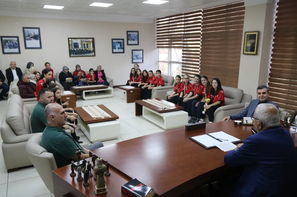 U14 Bolu Basketbol Ligi’ne katılarak şampiyon olan kız basketbol takımı, Başkan Posbıyık’ı ziyaretinde büyük sevinç yaşadı. Başkan Posbıyık sporcuları, teknik heyeti ve ailelerini kapıda karşılayarak tek tek tebrik etti.