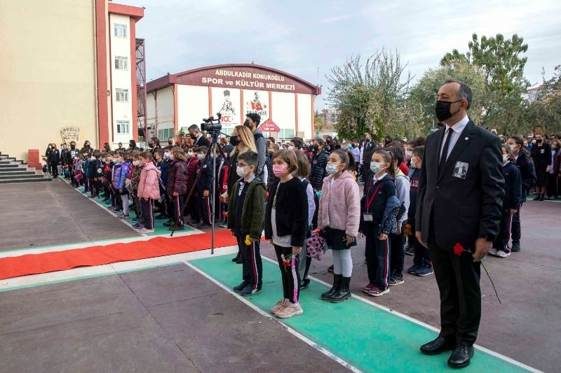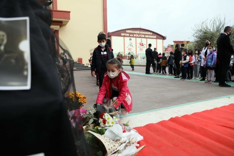 Okul bahçesinde düzenlenen anma töreni, saygı duruşunda bulunulması, İstiklal Marşı’nın okunması ve SANKO Okulları Genel Müdürü Fırat Mümtaz Asyalı’nın, değişik sınıflardan öğrencilerle birlikte Atatürk büstüne çelenk takdimi ile başladı.