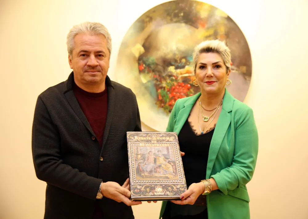 Konuşmalardan sonra, Gaziantep Ticaret Odası Güzel Sanatlar Lisesi Resim Öğretmeni Hüseyin Yıldırım, SANKO Holding tarafından bastırılan Gaziantep Müzesi’nin bilimsel yayını “Belkıs Zeugma ve Mozaikleri” isimli kitabı ressam Kuseyri’ye takdim etti.