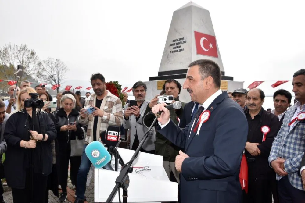 Zonguldak Valisi Osman Hacıbektaşoğlu, yaptığı konuşmada, Kars’ta yaptığı görev sırasında Bingür Sönmez ile tanıştığını, Ereğli’de deniz şehitliği olduğunu Zonguldak’a gelince öğrenciğini söyledi. Şehitlerin ölmeyeceğini ifade eden Hacıbektaşoğlu, “onlar diridirler, biz onları göremeyiz. 3 gemimiz, 7 Kasım 1914’te sabahında Zonuldak’ı bombalayan Rus donanması tarafından batırılmıştır. İstanbul’dan Trabzon’a gitmek üzere Sarıkamış cephesine askeri malzeme, mühimmat ve 60 bin takım kışlık elbise taşıyan gemilerimiz yarım saat içinde batırılarak 221 şehidimiz olmuştur. Kurtulanlar, esir düşenler olmuştur. Bugün, Türkiye Cumhuriyeti dimdik ayakta. Bugün buradaysak bunu şehitlerimiz ve gazilerimize borçluyuz” diye konuştu.