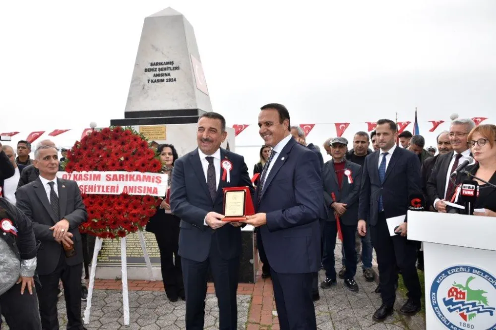 1.Dünya Savaşı devam ederken, İstanbul’dan hareket ederek Kafkas Cephesi’ne yardım götüren ancak 7 Kasım 1914 sabahı Ereğli açıklarında Rus Savaş gemilerince batırılan Bezm-i Alem, Bahr-i Ahmer ve Mithat Paşa gemilerinde şehit olan ve tarihe Sarıkamış Deniz Şehitleri olarak geçen 221 şehit için Kdz. Ereğli Belediyesi tarafından sahil bandında yaptırılan ‘Sarıkamış Deniz Şehitleri Anıtı’nda 111’inci yılında anma töreni düzenlendi.