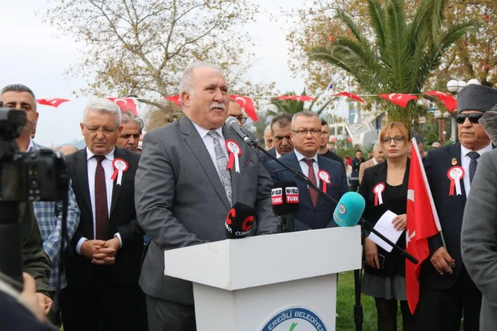 Bingür Sönmez hoca bana ilk ziyarete geldiğinde, dedi ki ‘Halil bir şey yapmamız lazım. Ne yapacağız. Ereğli açıklarında Rus donanmasının vurmasıyla 3 tane gemi battı. Gizli bir şekilde teçhizat, yiyecek, taşıyordu. Sarıkamış’a ulaşmış olsaydı belki savaşın seyri değişebilirdi. O kadar önemli bir olay. Bende tamam ne yapılması gerekiyorsa yapalım dedim. Projesini verdi ve bizde anıtı yaptık. Peşinden de şehitlerin ismini istedim. Şehitlerimizin hepsinin de isimlerini mermer taşlara nakşettik. Ve Sarıkamış ile Kdz. Ereğli arasında inanılmaz bir bağ oluştu. Sarıkamışlılar, Karslılar çok candan insanlardır. Her sezon bizi davet ederler. Ereğli’nin ismini de orada yaşatmak için proje hazırladıklarını biliyorum. Ben hepsine şükranlarımı sunuyorum. Hiç merak etmeyin siz kara biz deniz şehitlerimizi her yıl yürekten anacağız. Bu bilgiyi bizden sonraki nesillere aktarmak için elimizden geleni yapacağız.”