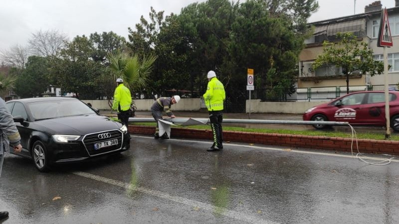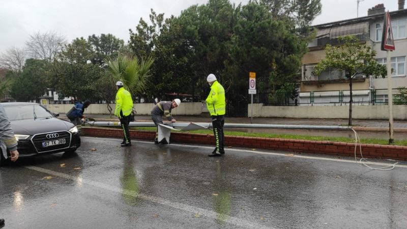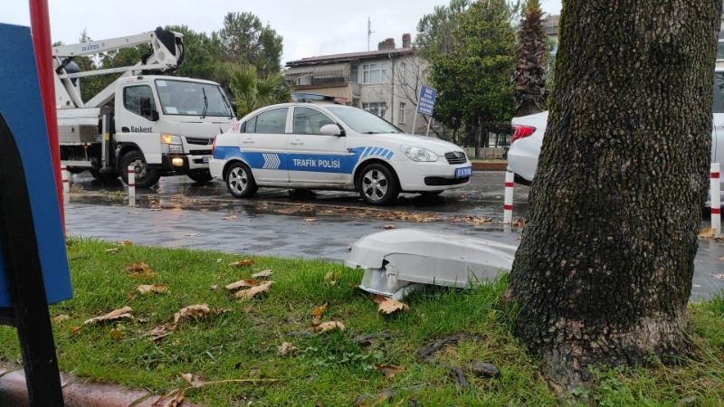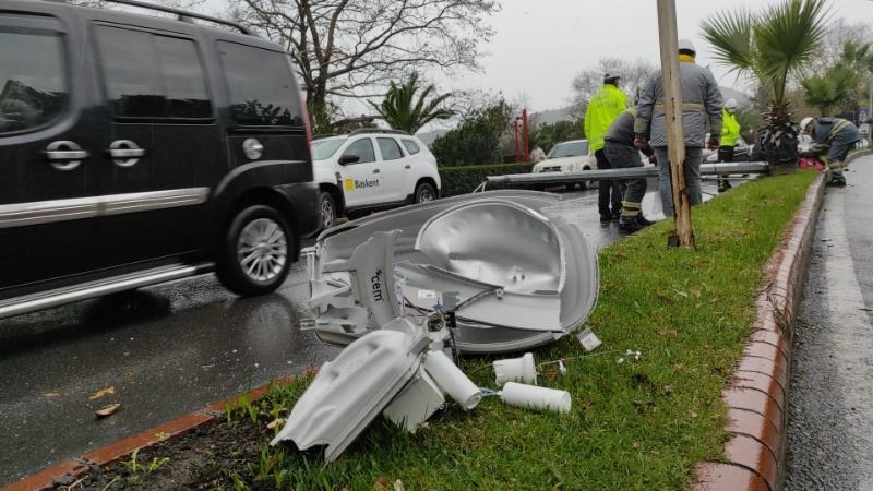 Zonguldak’ın Ereğli İlçesinde şiddetli fırtına aydınlatma direğine yıktı.