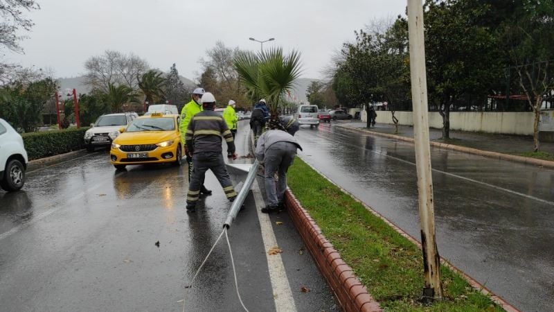 Olay Orhaar Mahallesi Bozahane mevkiinde meydana geldi. Alınan bilgilere göre şiddetli fırtına refüjdeki aydınlatma direğini devirdi. Olayda yaralanan olmazken yıkılan direği gören vatandaşlar polis, itfaiye ve elektrik kurumu yetkililerine haber verdi. Olay yerine gelen ekipler aldıkları güvenlik önlemi nin ardından yıkılan direğin kaldırılması için çalışma başlattı. Çalışma sırasında trafik tek şeritten verildi.
