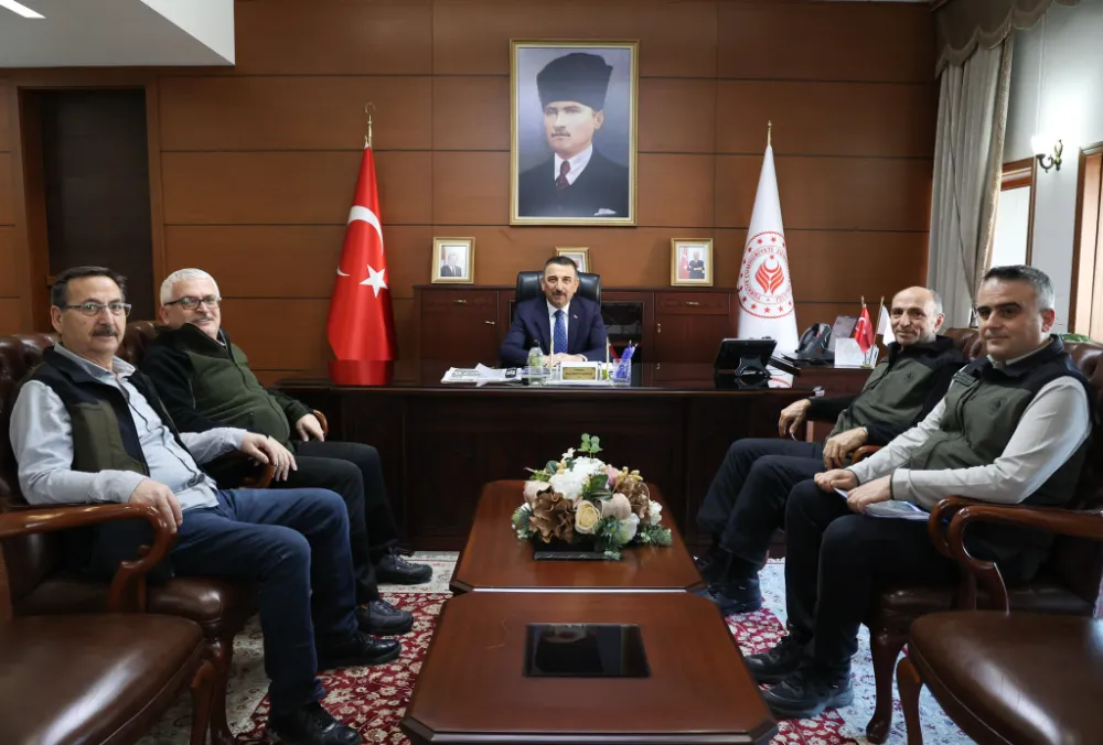 Zonguldak Valisi Osman Hacıbektaşoğlu, orman yönetimi ve mülkiyet konularını ele almak üzere önemli bir görüşme gerçekleştirdi. Zonguldak Orman Bölge Müdürü Hasan Keskin, Orman Genel Müdürlüğü Kadastro ve Mülkiyet Daire Başkanı Ahmet Akbulut ve Kadastro Şube Müdürü Hasan Ayhan, Vali Hacıbektaşoğlu'nu makamında ziyaret etti.