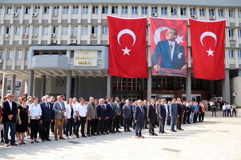 Zonguldak Valiliği önünde düzenlenen törene, Zonguldak Valisi Mustafa Tutulmaz, AK Parti Zonguldak Milletvekilleri Ahmet Çolakoğlu, Hamdi Uçar, Cumhuriyet Halk Partisi (CHP) Zonguldak Milletvekili Ünal Demirtaş, Zonguldak Belediye Başkanı Ömer Selim Alan, İl Jandarma Komutanı Kıdemli Albay Cezmi Yalınkılıç, Emniyet Müdürü Fahri Aktaş, Zonguldak Cumhuriyet Başsavcısı Abdurrahim Alan, Genel Maden İşçileri Sendikası (GMİS) Genel Başkanı Hakan Yeşil ve siyasi parti temsilcileri katıldı.