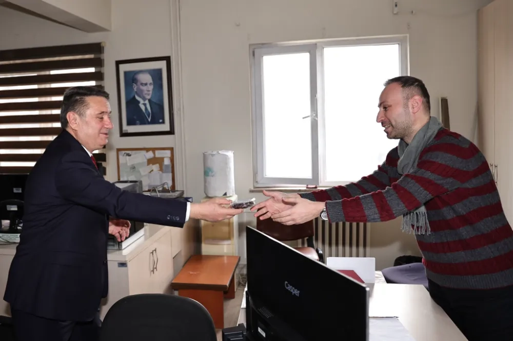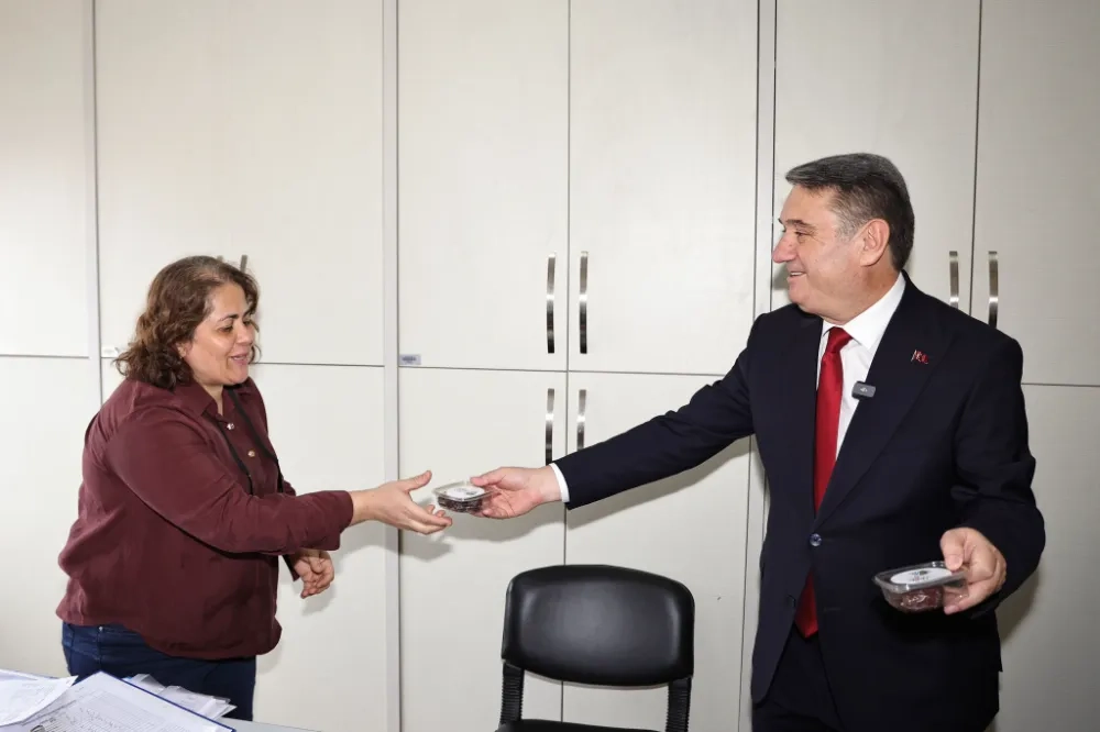 Belediye Başkanı Tahsin Erdem, Ramazan Bayramı vesilesiyle belediyemiz çalışanlarıyla bir araya geldi. Başkanımız Tahsin Erdem, personellerimizle tek tek bayramlaştı ve hurma ikram ederek bayram sevincini paylaştı.