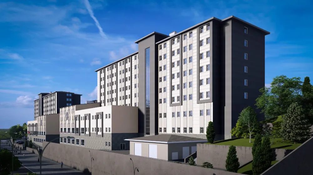 16.196 m² arsa üzerinde,3 bloktan oluşan,2 bodrum + zemin + 7 katlı,toplam 48.326 m² inşaat alanına sahip ve 2.980 öğrencimize hizmet verecek modern bir öğrenci yurdunun yapımını başlatıyoruz.